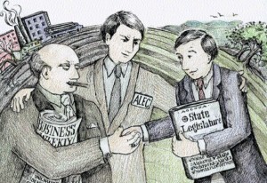 Last July, Bloomberg News acquired tax documents showing that Koch Industries, Exxon Mobil and other energy companies paid membership fees to ALEC in order to help write legislation repealing carbon pollution reduction programs in states around country.