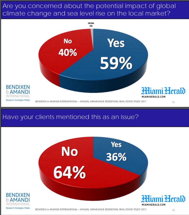 Two thirds of property buyers in Miami don’t even ask their brokers about “the potential impact of global climate change and sea level rise on the local market,” a new survey finds.