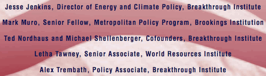 UPDATE: Obviously, the presence of the four Breakthrough Institute authors, including the two famous founders, will inevitably leave the impression with some that this is a BTI show. Originally, the Brookings website had this clarification: “Editor’s Note: Mark Muro is the lead contributor of the paper.” Now Brookings has updated its website to read “Mark Muro is one of the principal authors of the paper.”