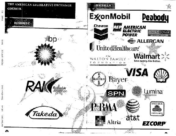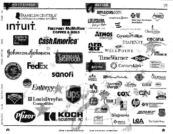 The following are the documents showing the large list of corporations financing the meeting. As you can see, they run the gamut from big polluters like BP to online retailers like Amazon.com to drug industry representatives from PhRMA to Koch Industries: