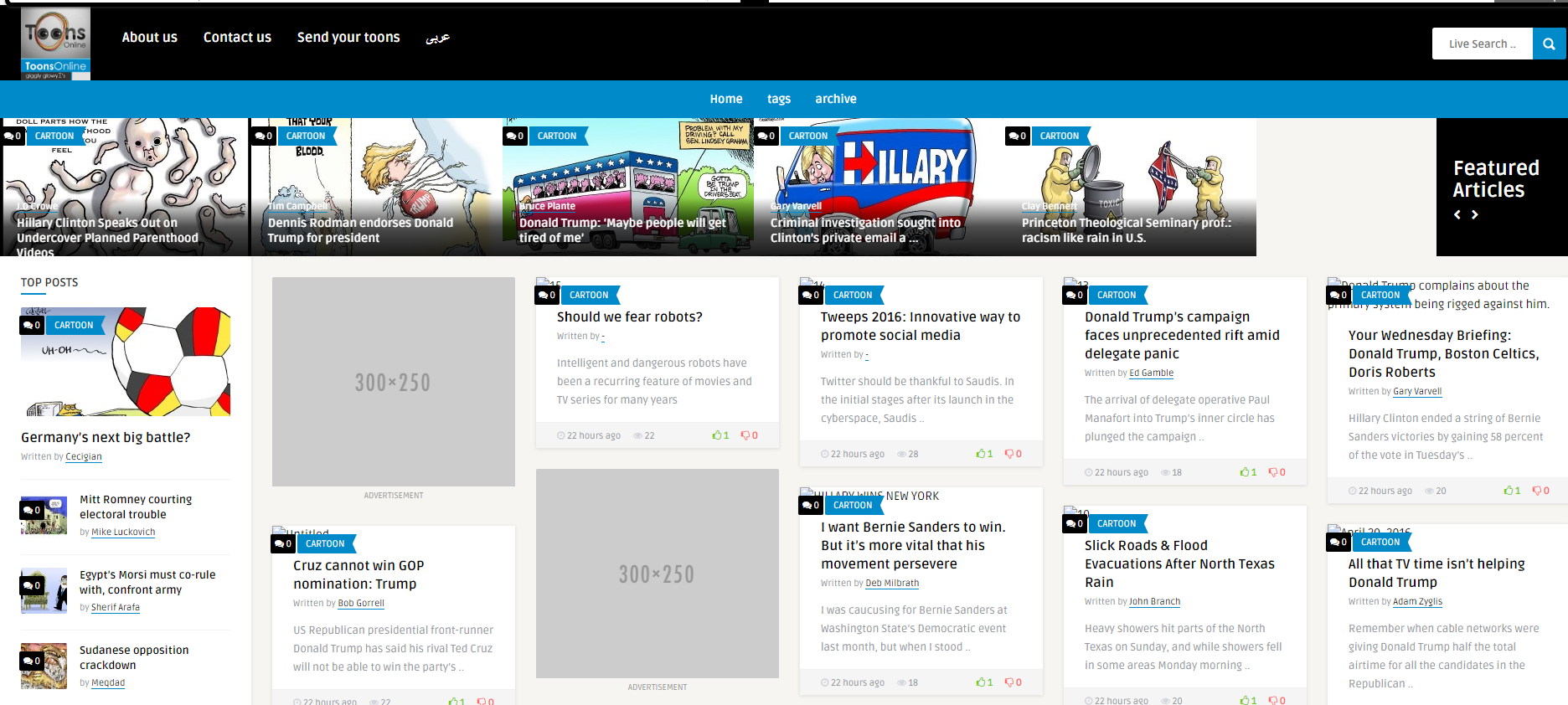 While the ToonsOnline Twitter account is suspended, its Facebook page is still active, with over 10,000 followers. The page’s content ranges from the humorous — caricatures of Trump, cartoons about Hillary Clinton — to the bizarre, such as a video instructing users how to create illusions about having holes in their hands.
