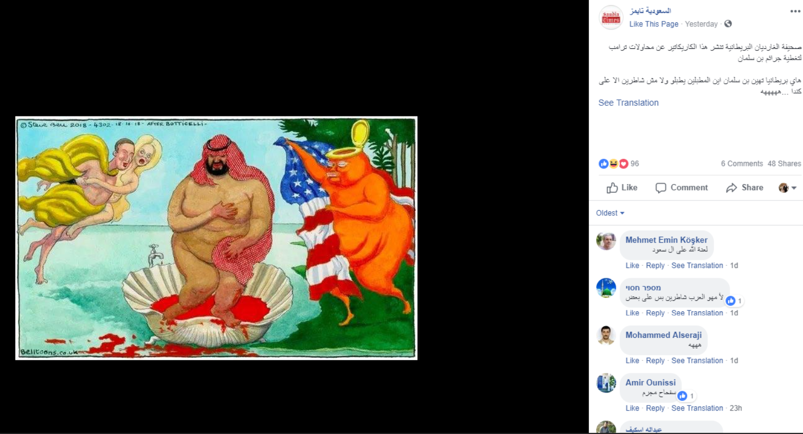 Topping the list with over 40,000 followers, the @saudiatimes account appears to mimic a news outlet critical of the Saudi regime. The account’s Instagram and Facebook pages remain live, illustrating both the site’s style and its memorable taste in artwork.