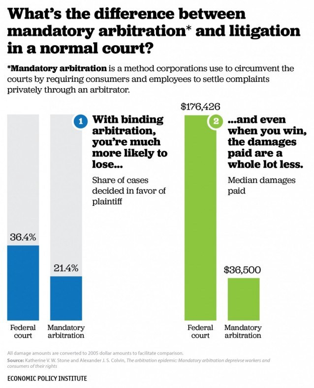 These decisions, moreover, had devastating impacts on workers. As the Economic Policy Institute demonstrated in a 2016 report, arbitrators are significantly more likely than judges to favor employers over workers. And, in the rare cases where workers do prevail before an arbitrator, such workers receive significantly less money.