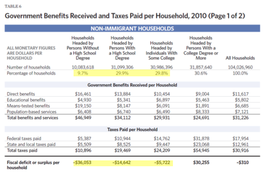 But to believe the Heritage Foundation is to believe — as they say on page 10 — that just under 70 percent of all Americans are moochers, taking more from the American economy than they pay in. Only from a starting point that claims 70 percent of Americans “take” from the economy rather than pay into it, can Heritage claim that legalized immigrants would also cost the government trillions of dollars: