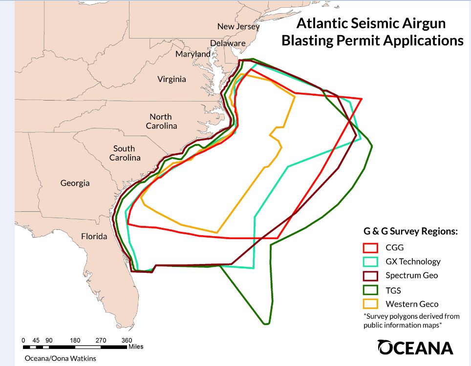 The area where the industry wants to do seismic blasting ranges from Delaware all the way down to the Florida. “It’s an area twice the size of California,” Hoskins said.