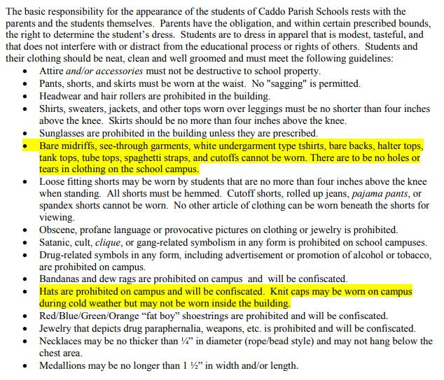 “Caddo Parish stands by the First Amendment right of students to express themselves,” the district’s statement read, “and that belief is supported within the Caddo Parish School Board’s approved dress code policy. This expression is without regard to race, color, religion, age, national origin, sex, sexual orientation, gender identity, or disability.”