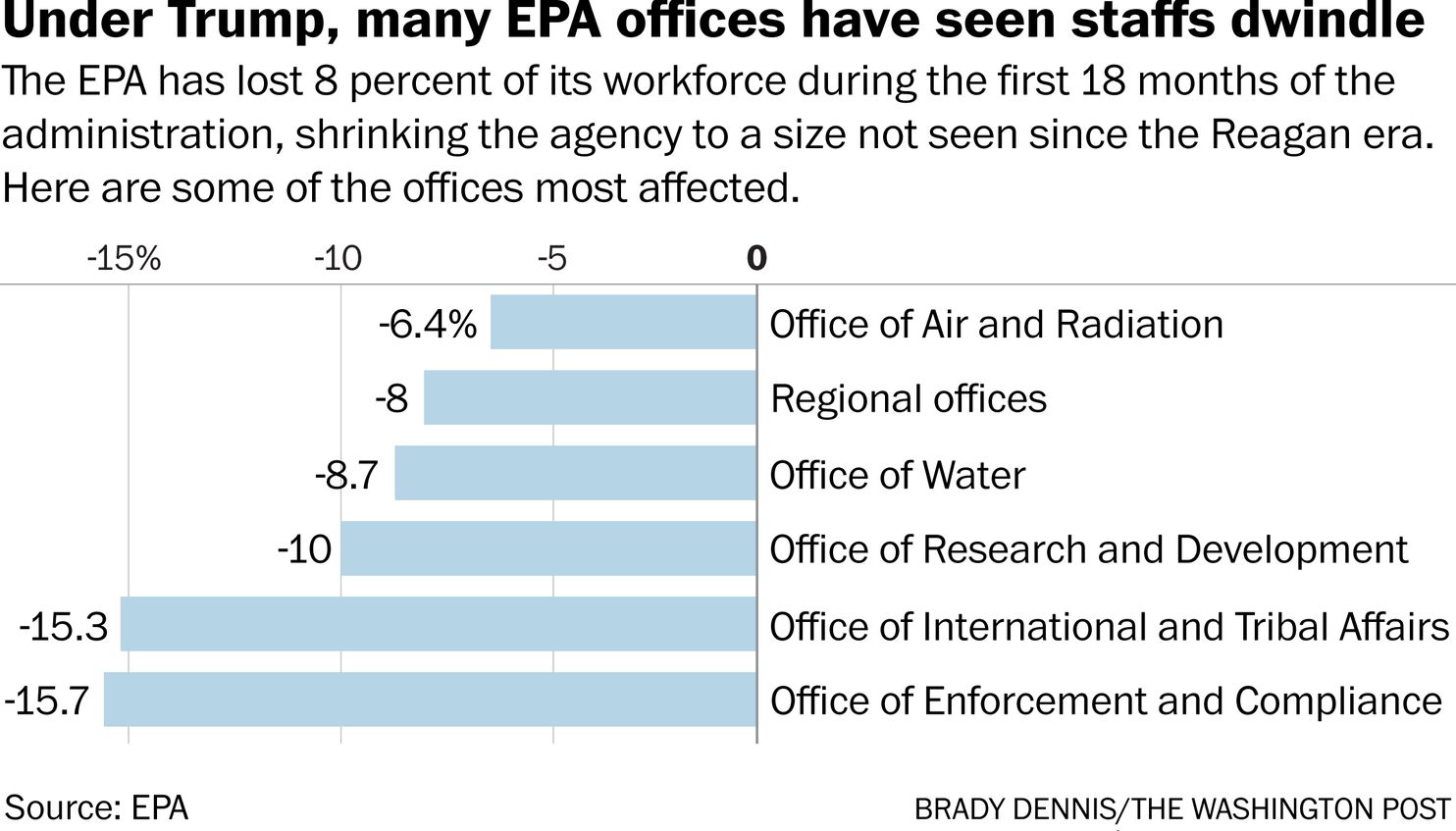 Under President Donald Trump, the staff of the Environmental Protection Agency (EPA) has shrunk to levels not seen since the Reagan administration.