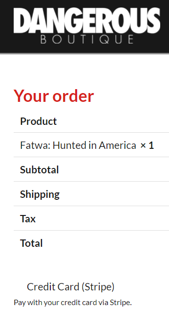 Users can only pay for the items with credit cards. As the site reads: “Credit Card (Stripe),” followed by “Pay with your credit card via Stripe.”