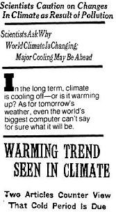 On May 21, 1975, the New York Times ran the story, “Scientists Ask Why the Climate is Changing; Major Cooling May Be Ahead.” This article begins with a clear statement of uncertainty: