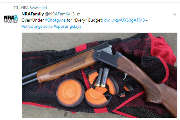 On Wednesday morning — less than 24 hours after the rampage, which was reportedly perpetrated by a 43-year-old man named Kevin Janson who was involved in a domestic violent incident on Monday — the NRA’s main Twitter account retweeted a post from NRAFamily about which guns it recommends people buy.