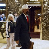 Milwaukee Sheriff David Clarke leaves Trump Tower. CREDIT: AP Photo/ Evan Vucci