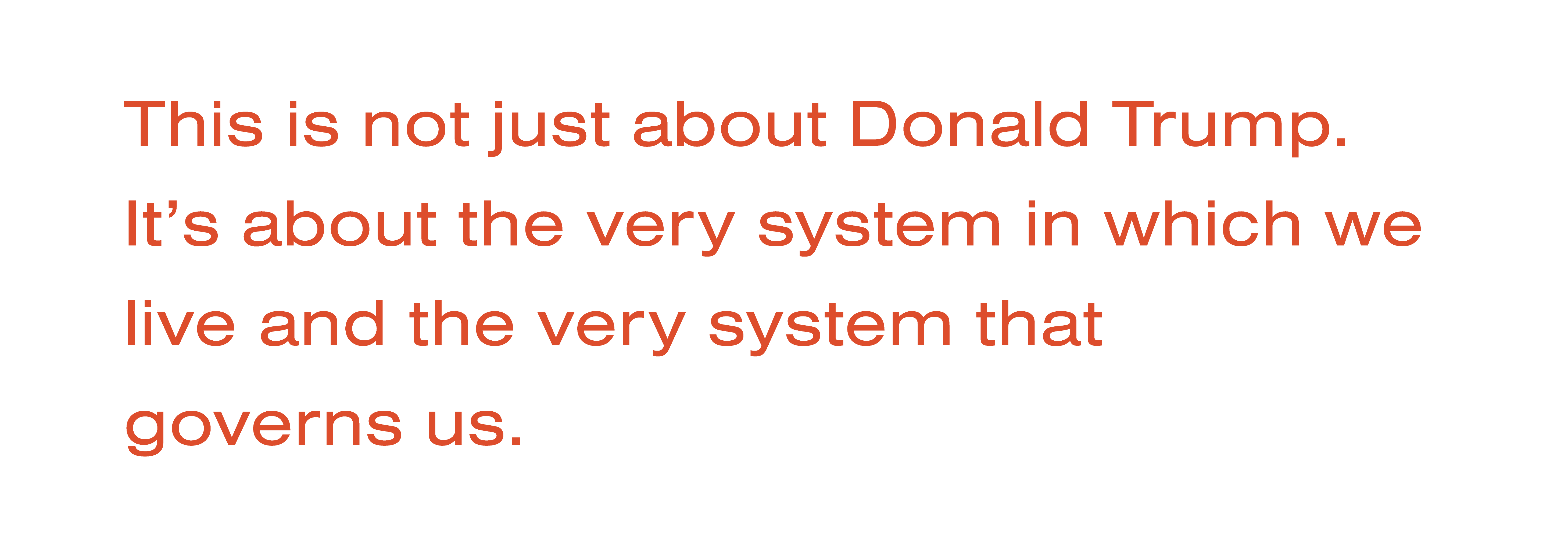 Yes, and I’m angry at people who treat him as an outlier! I’ll add that. I’m angry at people who treat him as exceptional and that as if we get rid of him, we’ve solved a problem. When in fact, clearly the rot, and the abuse, and the constriction of power at the very top, and the sclerotic nature of where all of the resources and the money and the power lie is, this is not just about Donald Trump. It’s about the very system in which we live and the very system that governs us.