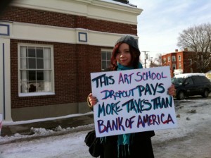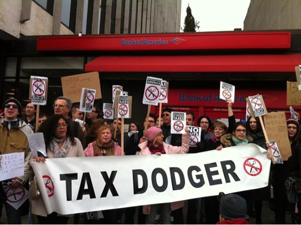 All across the country, Main Street Americans are protesting tax dodgers like Bank of America. A picture from one such demonstration (HT: @loril):
