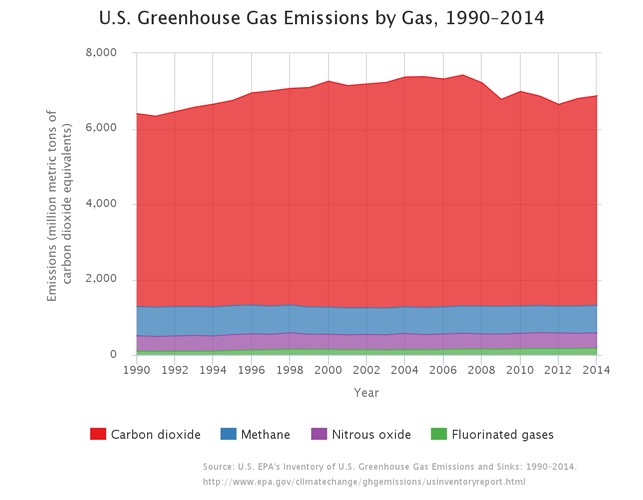 As the chart above makes clear, while the U.S. has made great strides in reducing GHG emissions recently, we are still above 1990 levels.