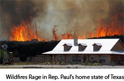 After wildfires tore across Paul’s own state of Texas, Gov. Rick Perry (R-TX) pleaded for even more FEMA aid. Perry said that “the ‘severity and magnitude’ of the fires was so great that FEMA should direct other federal agencies to step in and help run the fire-fighting effort in those counties.”