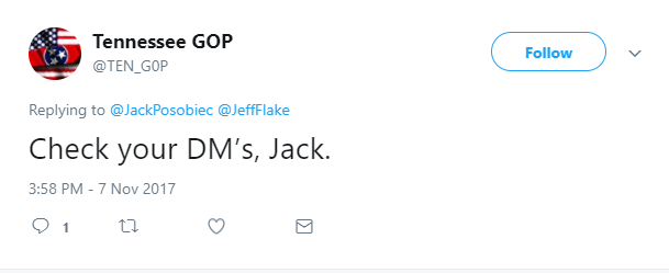 While it’s unclear if Posobiec interacted with the new account on Twitter, it’s not for lack of trying on the part of the @TEN_G0P account. As the @TEN_G0P account’s first tweet read, “Check your DM’s, Jack.”