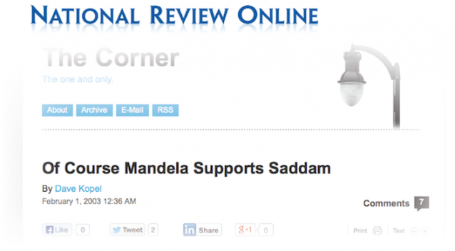 National Review labels Mandela a “communist” for opposing the Iraq war.