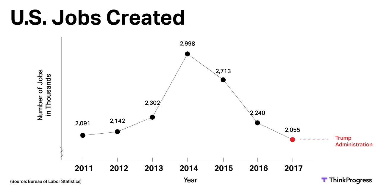Additionally, Trump’s decision to tout the 2.4 million figure ignores the fact that he is taking credit for the final two months of the Obama presidency — an economy Trump had no hand in creating.