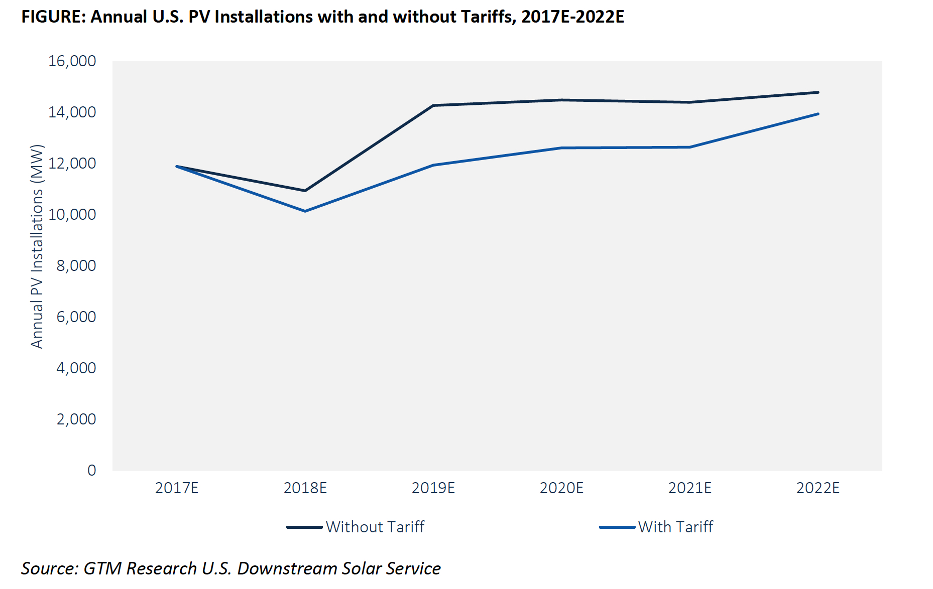 “Chinese manufacturers have aggressive cost reduction plans in place already,” Shiao said, and the U.S. is only 10 percent of the global market. But GTM’s research finds that the tariffs will reduce U.S. installations about 10 percent over the next five years. So any overall impact on Chinese solar manufacturing and sales will be quite modest indeed.