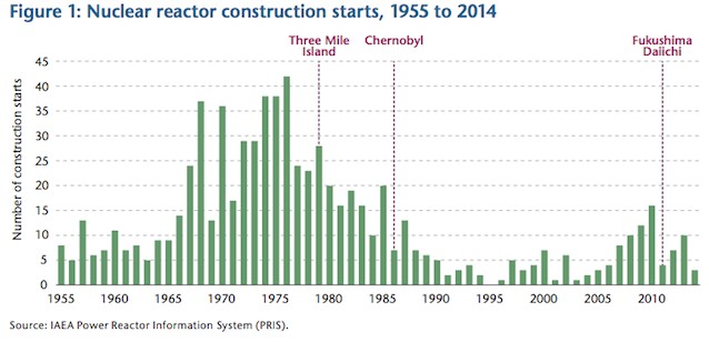 They ignore the core issues: The nuclear power industry has essentially priced itself out of the market for new power plants because of its 1) negative learning curve and 2) inability to avoid massive delays and cost overruns in market economies. This is doubly problematic because the competition — renewable power, electricity storage, and energy efficiency — have seen steady, stunning price drops for a long time.