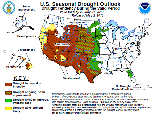 The Western U.S. faces low mountain snowpack, and the most recent U.S. Seasonal Drought Monitor Outlook finds that “drought is forecast to either develop or persist across the western contiguous U.S. as this region enters its dry season.”